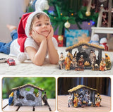 • COLLECTIBLE: Figures include Joseph, Mary, baby Jesu.s, Shepherds, Angel, The Three Kings , Cow, Sheep, Donkey and a stable.