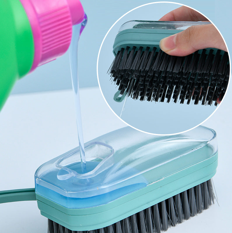 EASY TO USE: Open the cap on the top of the brush and fill it with soap to fill the body and lock it in place. To start cleaning, simply press the button and it sprays soap through the brush head via air displacement.