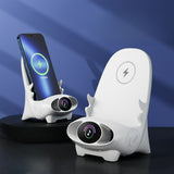 - Unique and novel, the wireless charging/mobile phone holder function can be placed horizontally or vertically, and there is a sound hole at the bottom to make the sound more three-dimensional when the phone is playing.