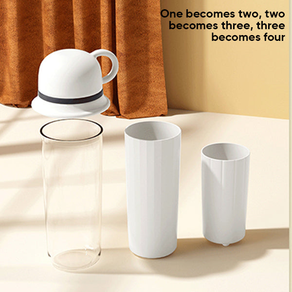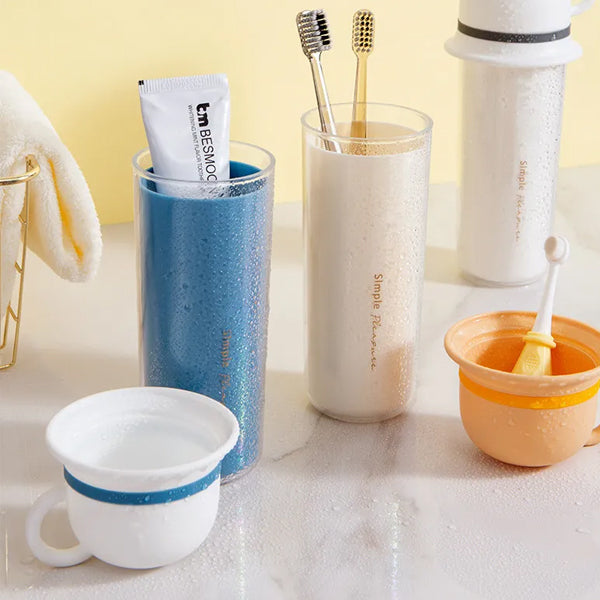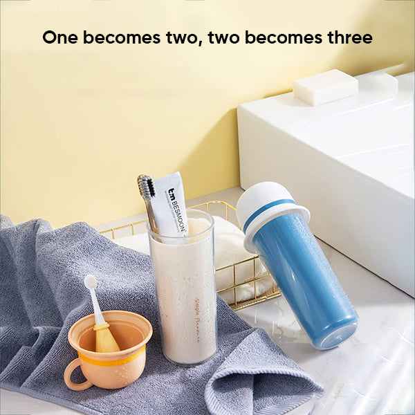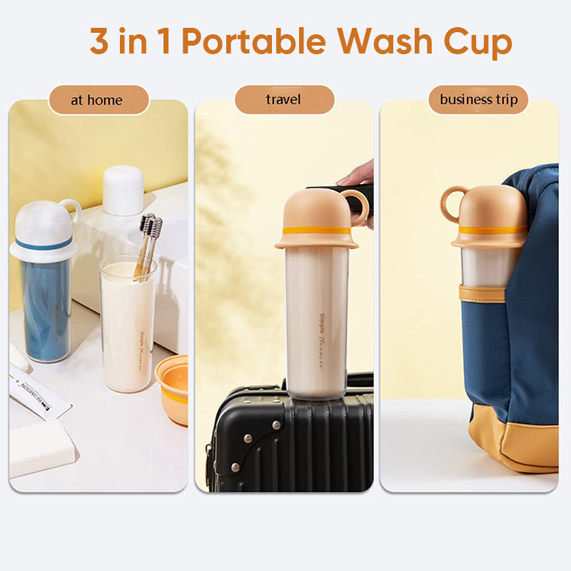 【Portable Designã€?/strong>Travel toothbrush case with large capacity design and double section structure. This is a travel mouthwash cup for three people to use at the same time, the top lid with handle can be used by children, the middle cup below can be used by mothers, and the outermost cup can be used by fathers. Saves the family a lot of time washing dishes.