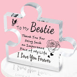 • Beyond its sentimental value, this engraved puzzle acrylic plaque serves as a versatile decorative item. It can be proudly displayed on a desk, shelf, or living room, etc, radiating sisterly affection and adding a touch of warmth to a sister's room.