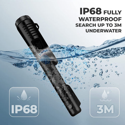 【Full Waterproof Designã€?/strong>The needle pointer of the dustproof metal detector is full waterproof. In any weather, heavy rain, even in the lakes, rivers, ponds and oceans, you can sink the pinpointer metal detector waterproof into water to find the treasures hidden under the water.