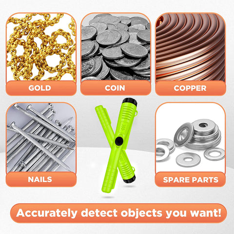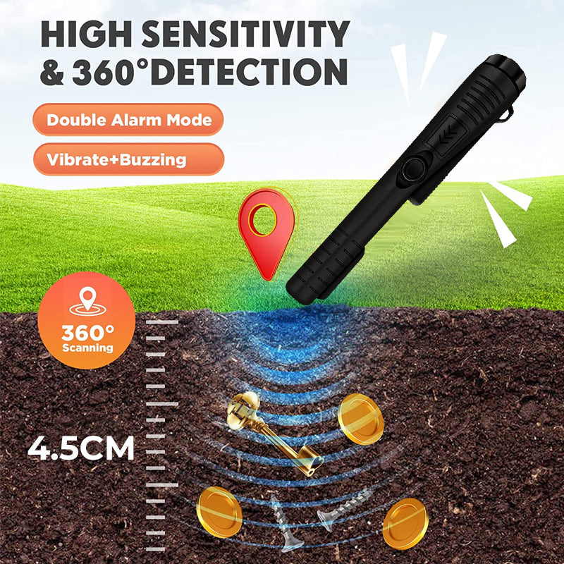 【High sensitivity 360°detectionã€?/strong>The metal detector allows you to grasp the metal detector horizontally to scan large areas quickly, then use precise positioning tips to narrow and precisely locate the target before excavation. The bar probe design allows you to insert a hand-held metal detector into the hole for detection.