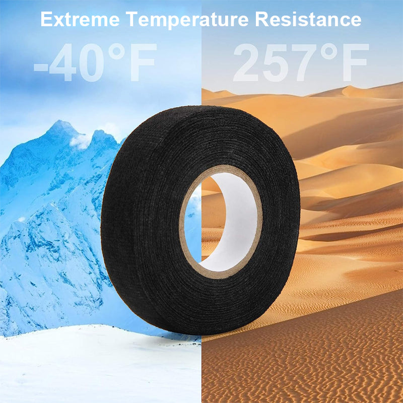 High temperature and low temperature resistance: High temp Wire Harness Automotive Cloth Tape with excellent sound and rattle dampening performance. Lessens coil whining and lasts well against elevated temperatures (-40°C - 150°C).