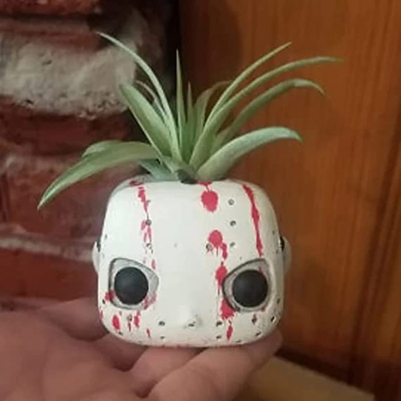 High quality material: Horror Movie Planters Show your love for horror movies thanks to this spooky head planter that features a sculpted face mask.