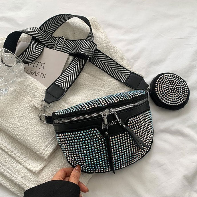 - 1* Fashion Rhinestone PU Leather Waist Bag