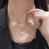 Mermaid Necklace Pearl Pendant Multi-layer Chain