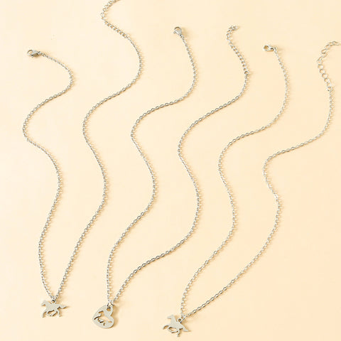 Stainless Steel Mom & Daughter Horse 3-Pieces Necklace - Gift for Mum