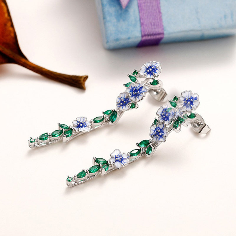- 1* BLUE FLOWER CHAIN EARRINGS