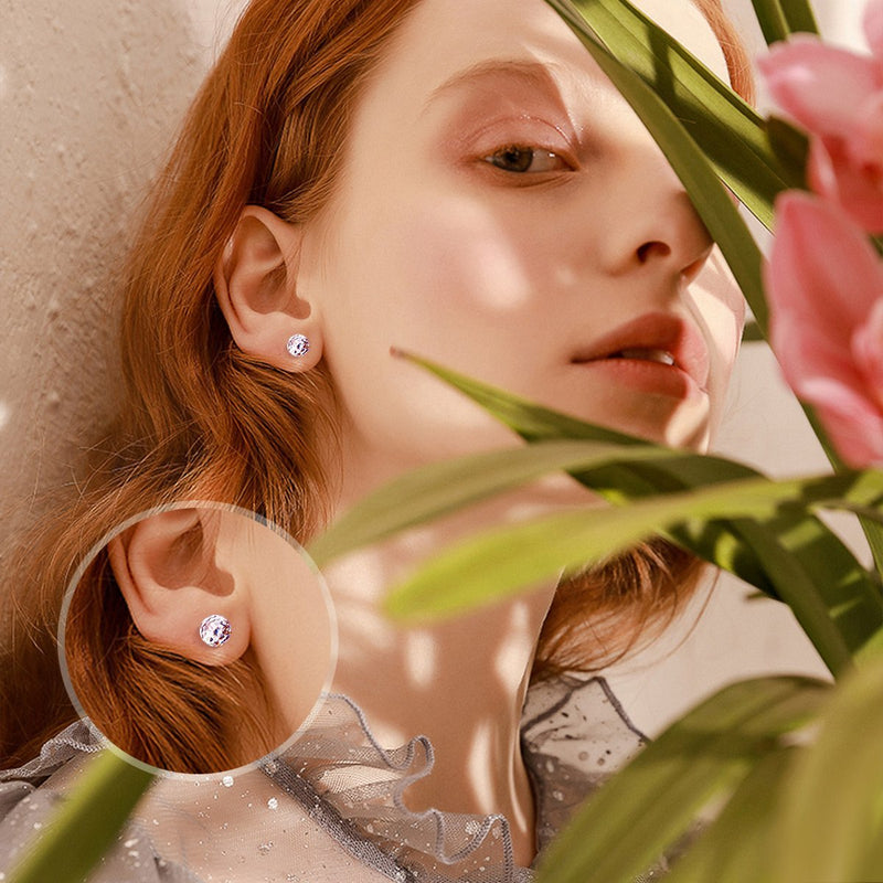 This dazzling and cute pair of stud earrings boasts numerous facets, shining brilliant light in every angle. The detailed of the 925 sterling silver earrings cutting process perfectly shows the beauty of the combination of the crystals and lights, presenting a subtle and glamorous style.