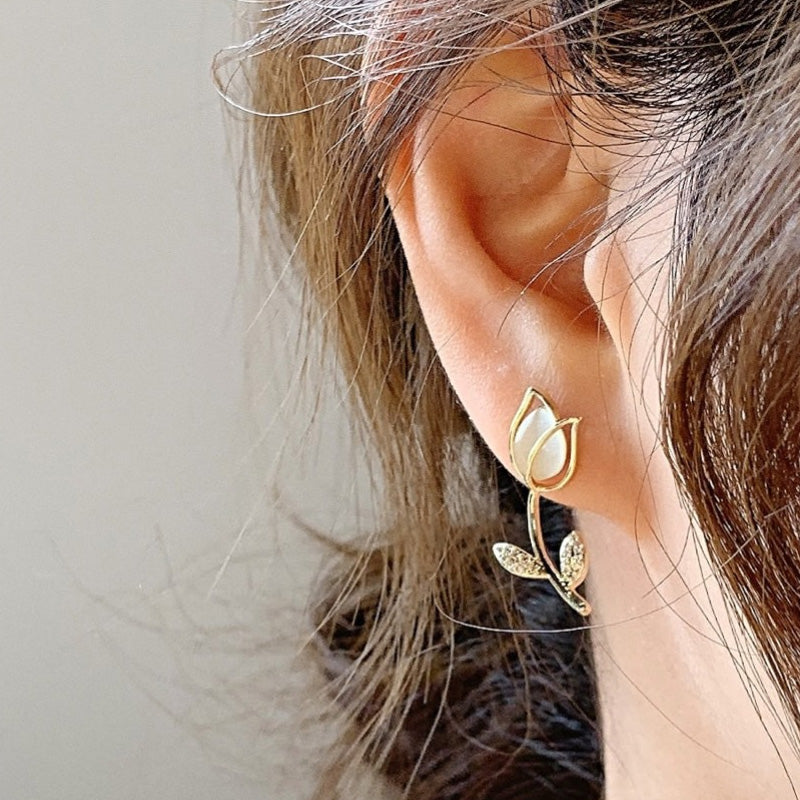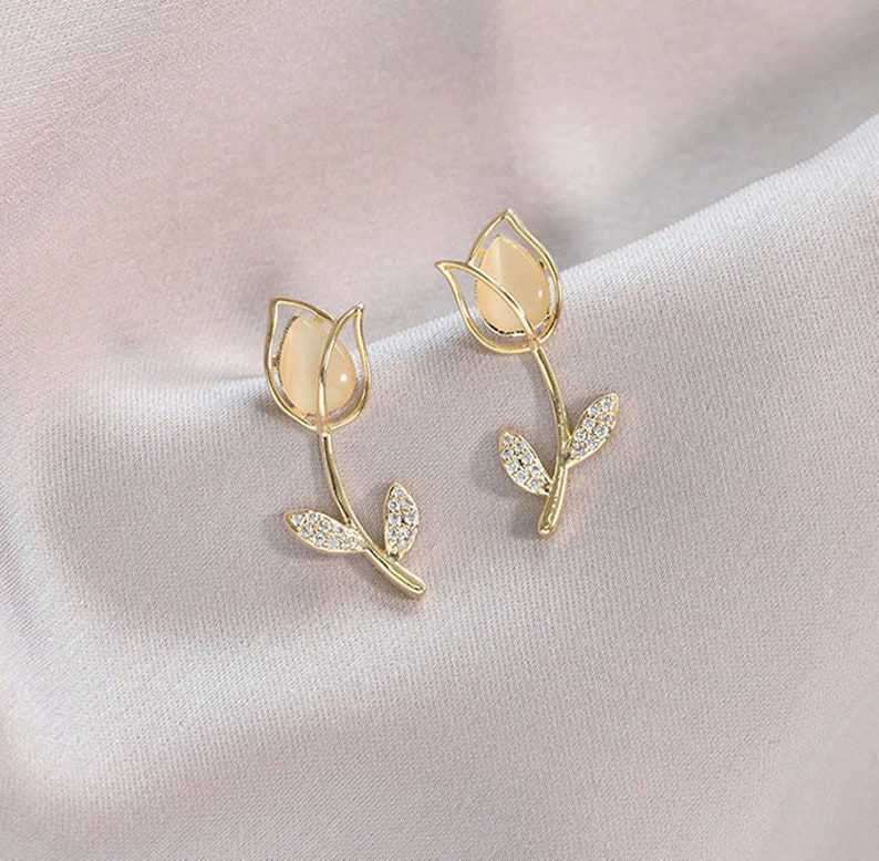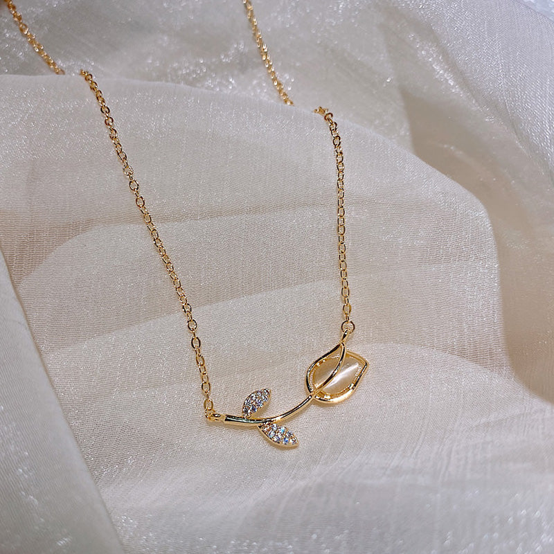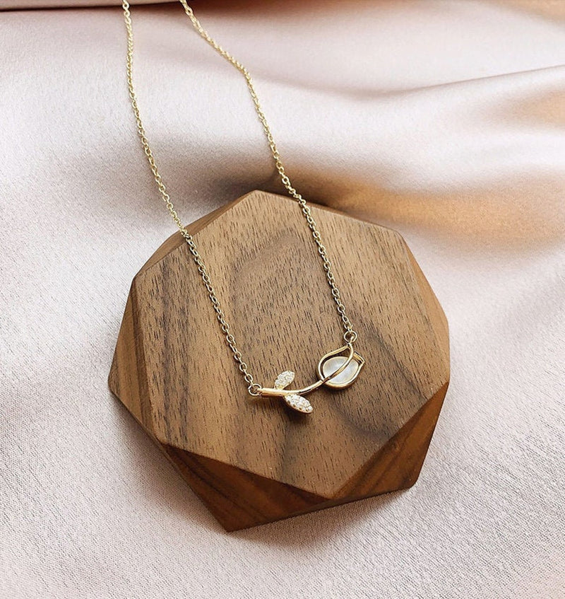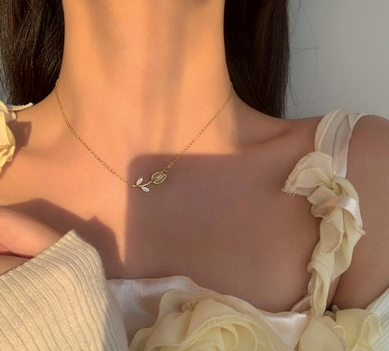 🌷🌷Tulip flower necklace,14k gold plated, with tiny cubic zirconia embedded✨ Sparkle ✨, but not too overwhelm