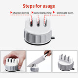 【Sturdy and Durable】The Suction Cup Knife Sharpener is crafted from solid ABS plastic, sturdy, durable and corrosion resistant stainless steel. After 3,000 use tests, our hands-free knife sharpener as sharp as ever.