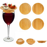 Versatile Charcuterie Board Topper: This Bamboo Wine Glass Topper Coaster is not just any ordinary coaster; it's a versatile charcuterie board topper. Perfectly sized to fit over your wine glass, it provides a convenient surface for holding your favorite charcuterie snacks while you enjoy your wine.