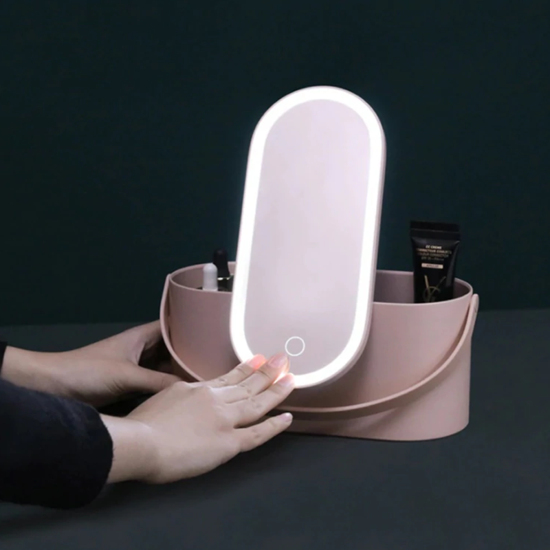 USB-rechargeable light: The organizer features a smart mirror with a USB-rechargeable light, so you can be flawless while traveling or when just having a quick sleepover.
