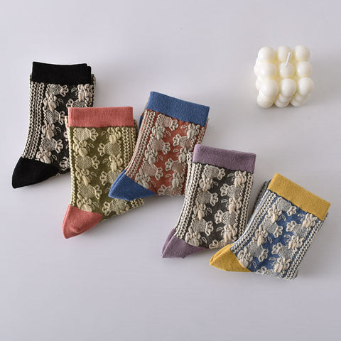 10 Pairs Women's Vintage Embossed Cotton Socks