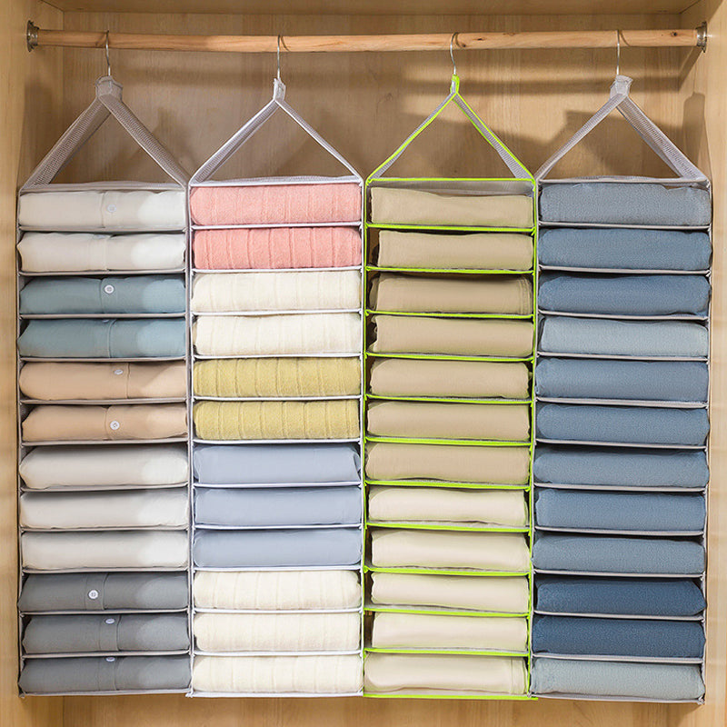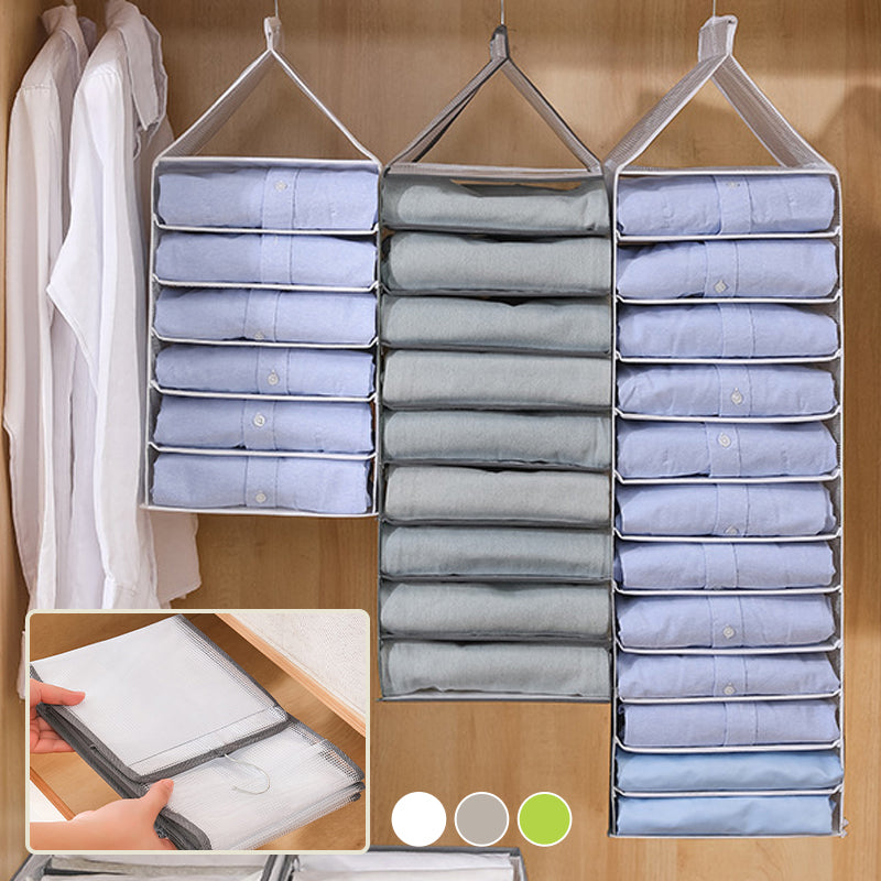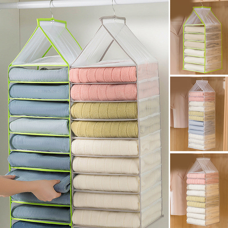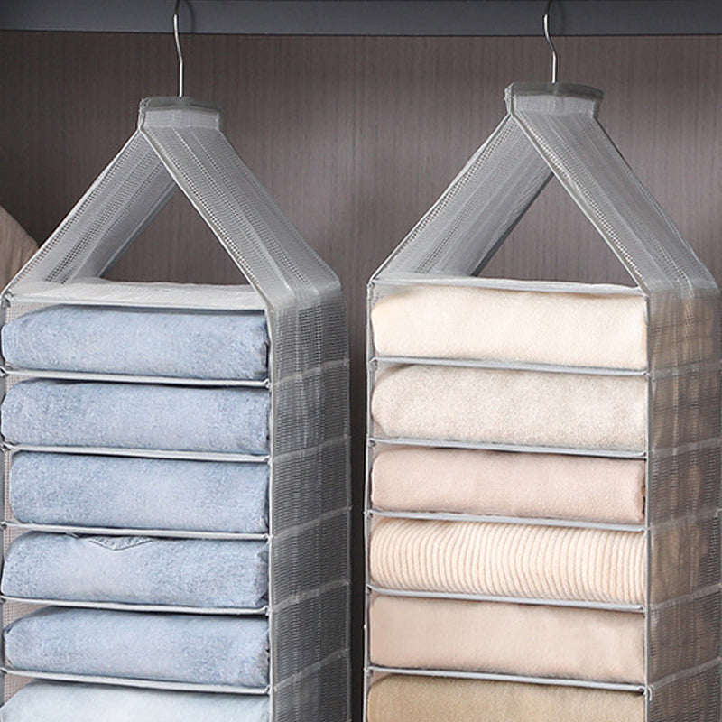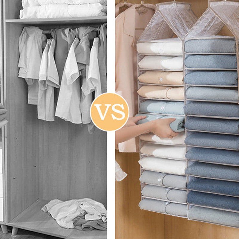 Excellent multi-layer storage: Designed for sweaters, jeans, T-shirts and dresses, this hanging wardrobe storage rack helps keep your closet organized. Each compartment holds one item for easy access and organization. Great for bedroom wardrobes, durable and flat.