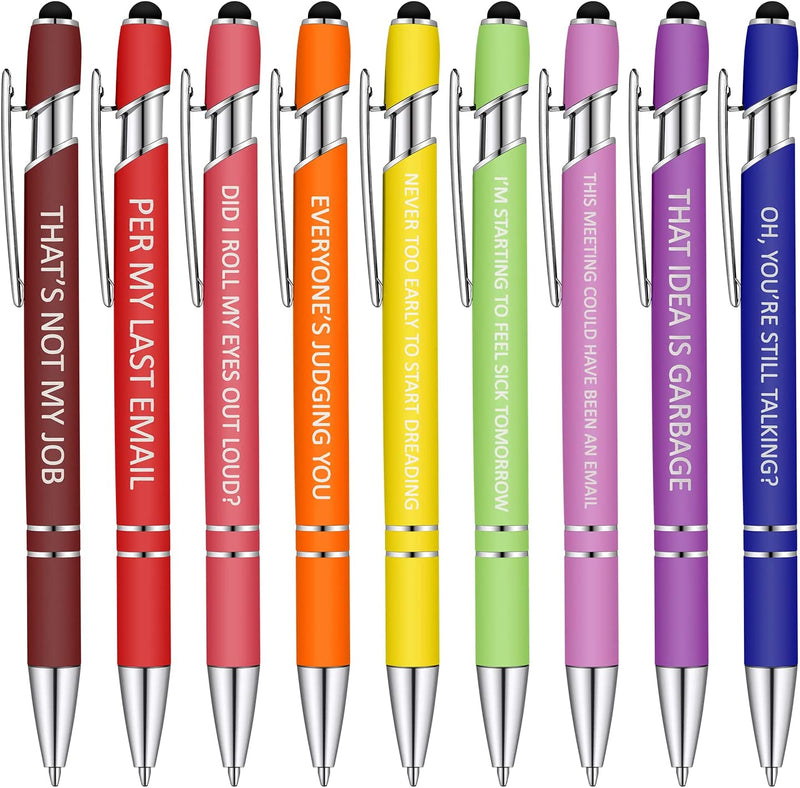 Funny pens: you will get 10 pieces of funny pens in 10 styles in the package, they are printed with different phrases and diverse macaron colors, sufficient funny office supplies can meet your daily office needs