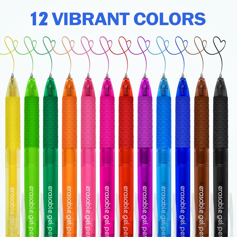 This set of 12 pens comes in a range of bright colors, perfect for adding a splash of color to your notes, journals, or artwork. Whether you're in the office or doing a creative project, these pens provide smooth, vibrant writing with the option to erase any mistakes.