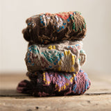 ※ MATERIAL: 75% Premium Cotton, 20% Polyester, 5% Spandex. These cotton socks are gorgeous, comfortable, not itchy, not too tight around the ankle and calf - but they stay put all day.