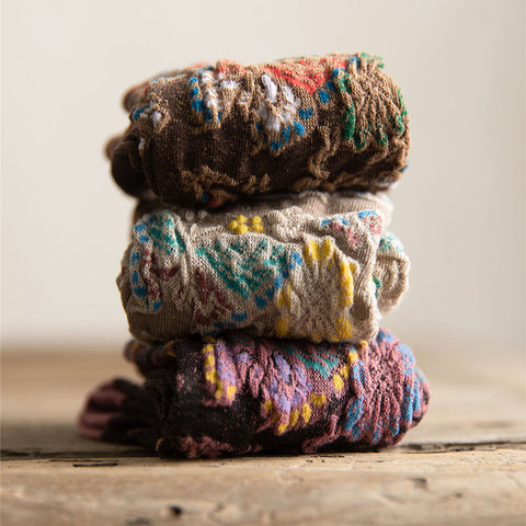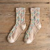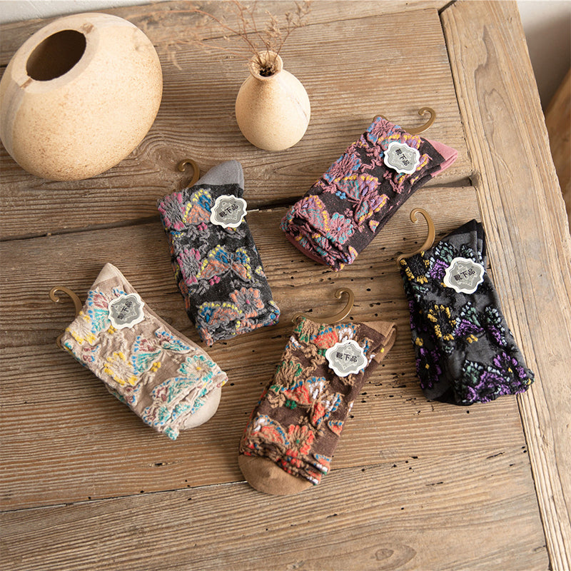 5 Pairs Women's Vintage Embossed Floral Mid-calf Socks