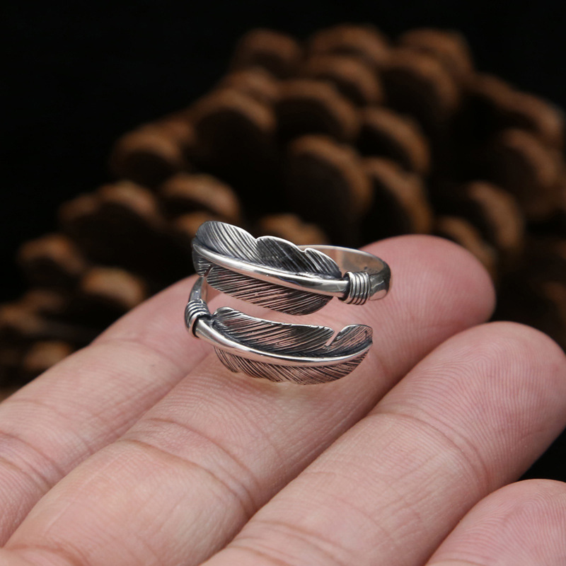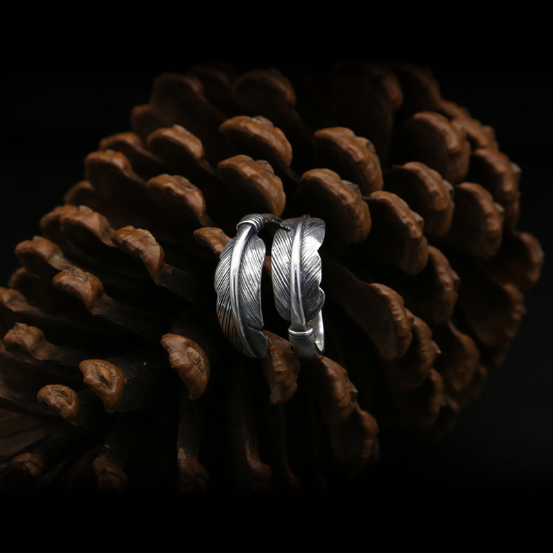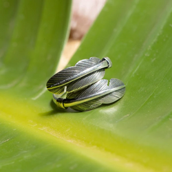 This "Angelic Feather" ring is composed of two feathers cast in solid silver and covered with pure silver. It is fully adjustable to fit the size of your finger, so you don't have to worry about the size.