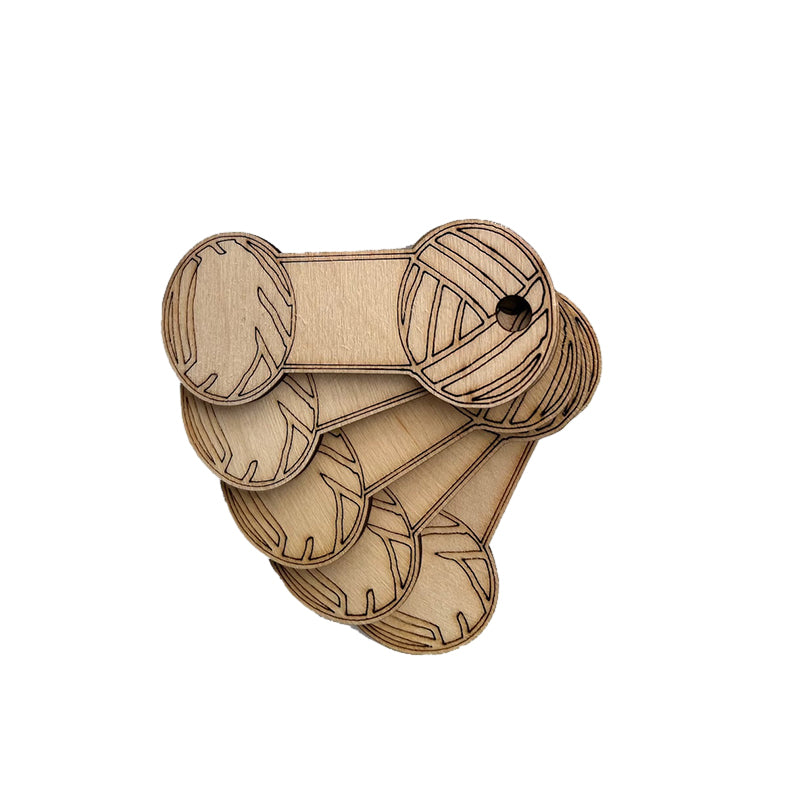These yarn tags (or "pegs") are perfect for organizing your yarn on! Simply wrap it around the laser cut ball of yarn, and write in the colour name in the gap at the bottom.