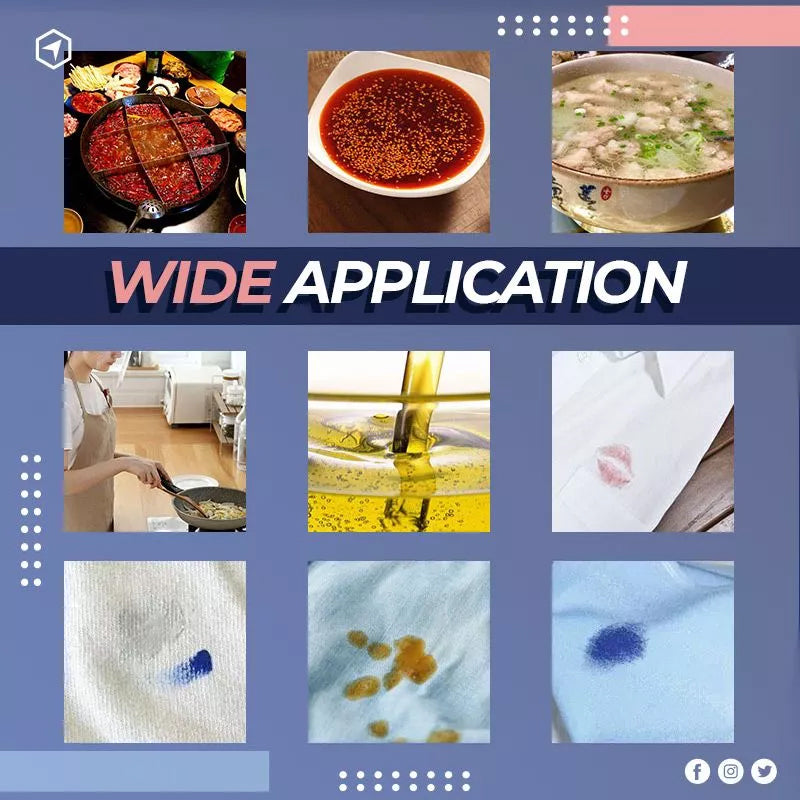 Effectively remove clothes oil stains, grease, paint, lipstick, make-up, ink, blood, baby food, coffee, rust, etc.,