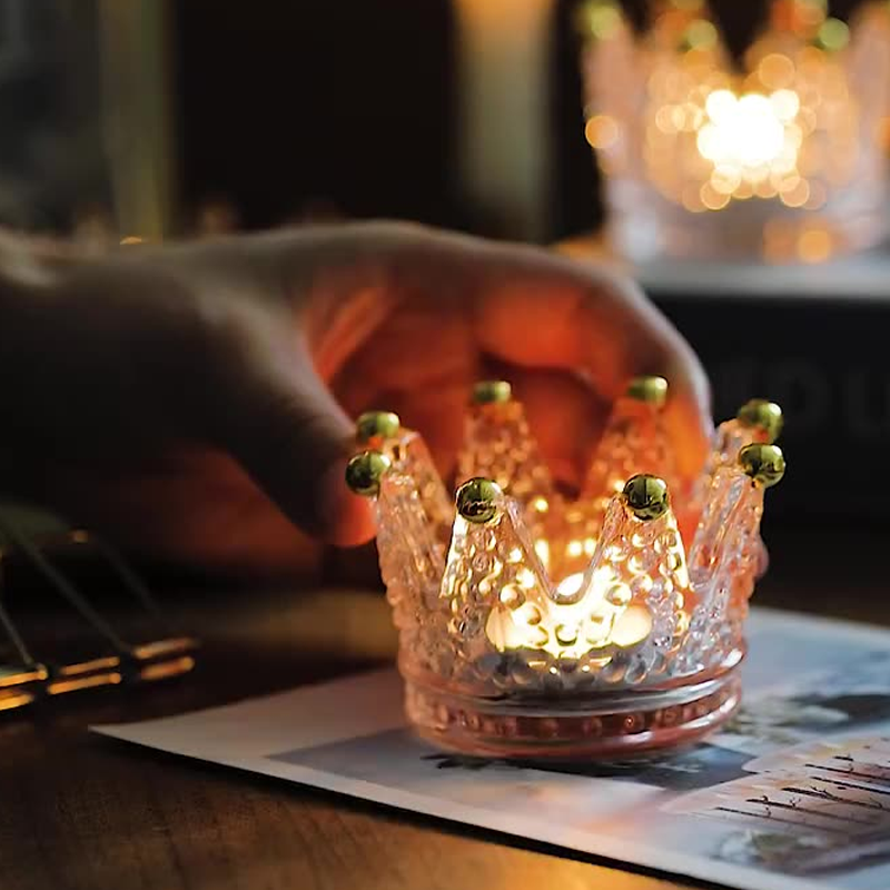 Size: Each crown candle holder measures 7.5cm*5.8cm*5.5cm, suitable for regular candles or LED candles. Each candle holder has a thickened base to prevent overheating or cracking.?It gives you a beautiful light at night.
