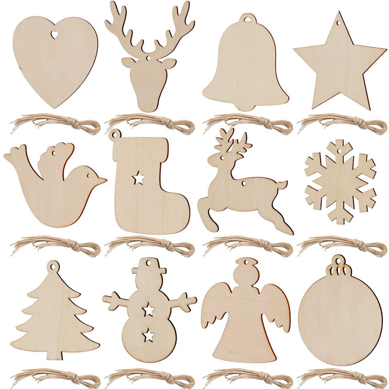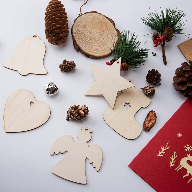 - ¡ôMATERIAL:?The unfinished wood ornaments are made of premium quality natural wood, laser-cut and polished. Both sides are sanded to a smooth finish ready to paint, write, decorate or simply leave plain. It is safe for kids as an environmentally friendly Christmas gift