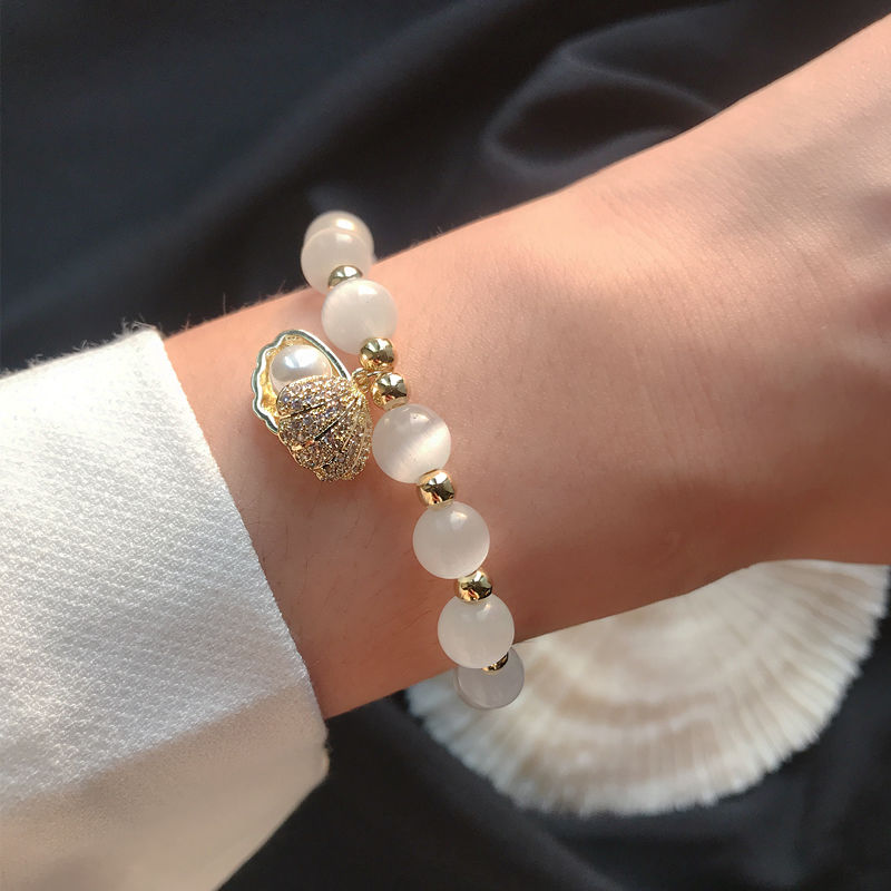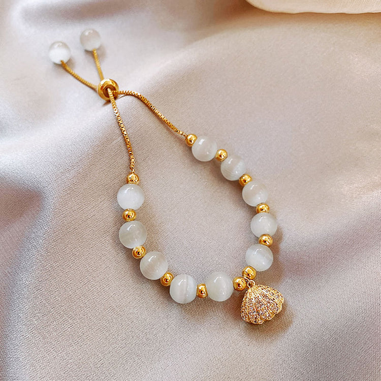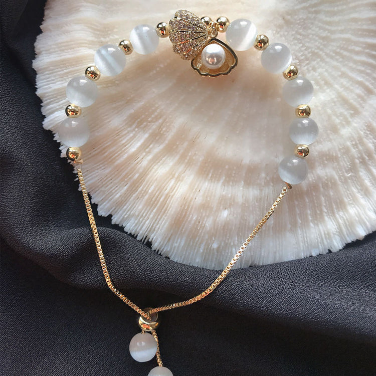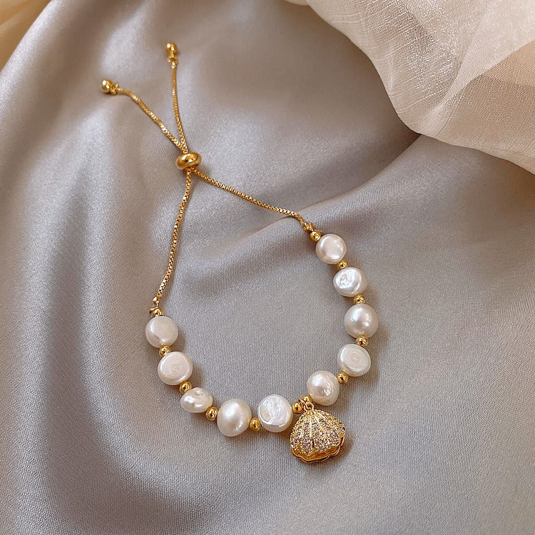 Shell Pearl Bracelet is a delicate feminine design that is the perfectbalance of softness and strength. This Bracelet would makethe perfect complement to any outfit.