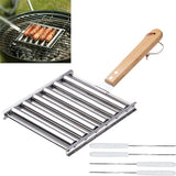 - GRILLS EVENLY - This very handy BBQ hot dog griller ensures that your hot dogs are cooked evenly every time. Rolling grill cooks up to 5 hot dogs or sausages at a time. Special device prevents under or exaggerated areas spoil that delicious, juicy hot dog flavor. Fits a charcoal or gas grill rack.