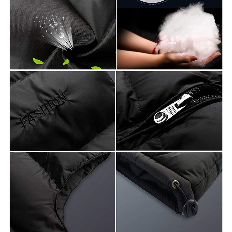 This men ultralight down vest has standing collar, zip-front closure and two zip side pockets, quilted high-density polyester delivers superior comfort and durability. We adopt the unique technology to makes this mens down body warmer light and soft, wind resistant, breathable and comfortable to wear in spring, autumn and winter.