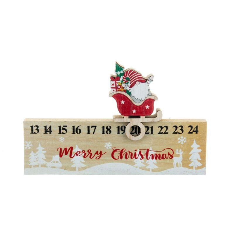 Christmas Countdown Calendar: Desk Calendar features wooden number and month blocks which you use to set the date, and a Santa Claus standing on top. It can be added to shelves, fireplace mantle or tabletops.