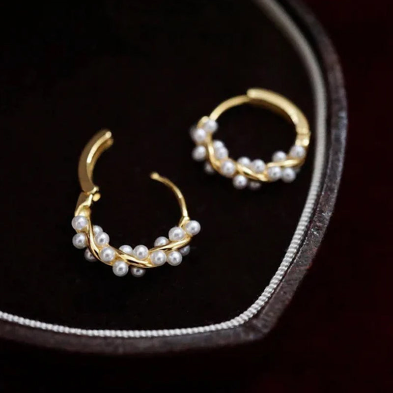 Package: 1 Pair * Minimalist Delicate Twisted Pearl Hoop Earrings