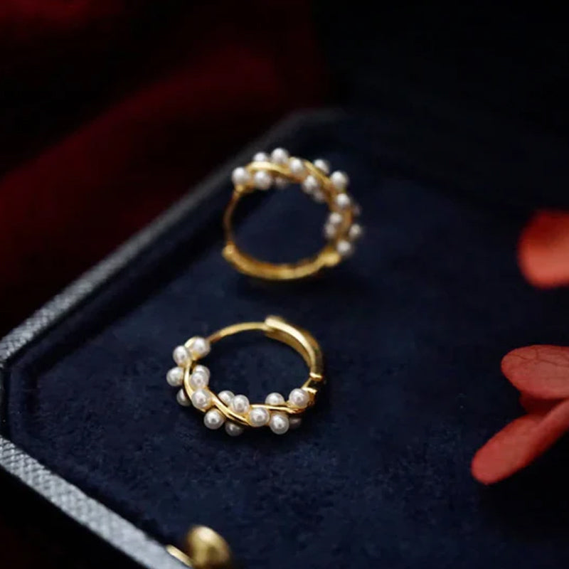 Minimalist Delicate Twisted Pearl Hoop Earrings