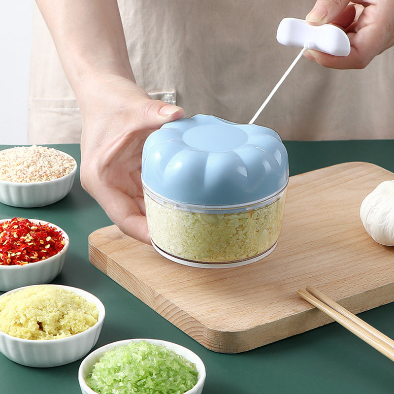 Ergonomic & Easy to Use - Ergonomic curved grip fit your hand shape, more effortless, just put food or ingredients into the mini food processor by hand, then pull the string back and forth. The can be cut to the required fineness or mixed ingredients. What practical kitchen gadgets. Bowl and blades can be separated, so the hand pull food processor is convenient to wash.