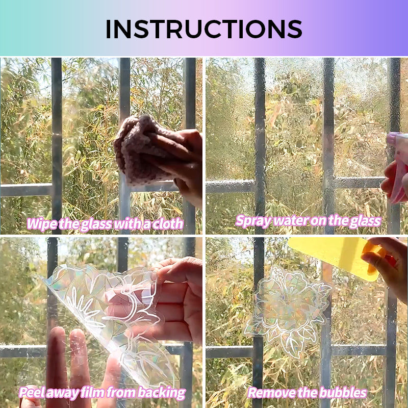 [INTERESTING DESIGN] These decals actually do not have any color but some rainbow can be seen after capture the sun rays and turn them into bright rainbows throughout the room.