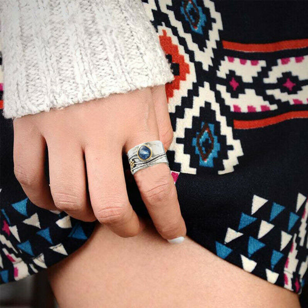 Silver Aquamarine Leaf Ring