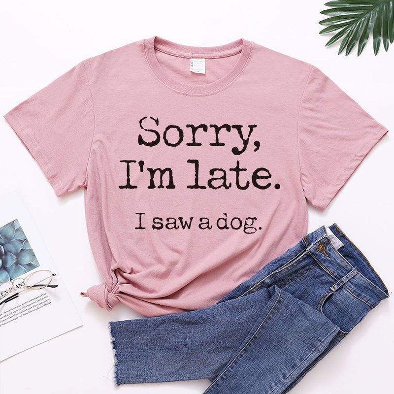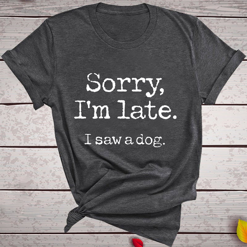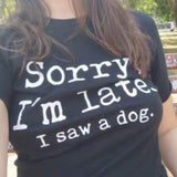 Sorry I'm Later - Letter Print T-shirt for Dog Lovers