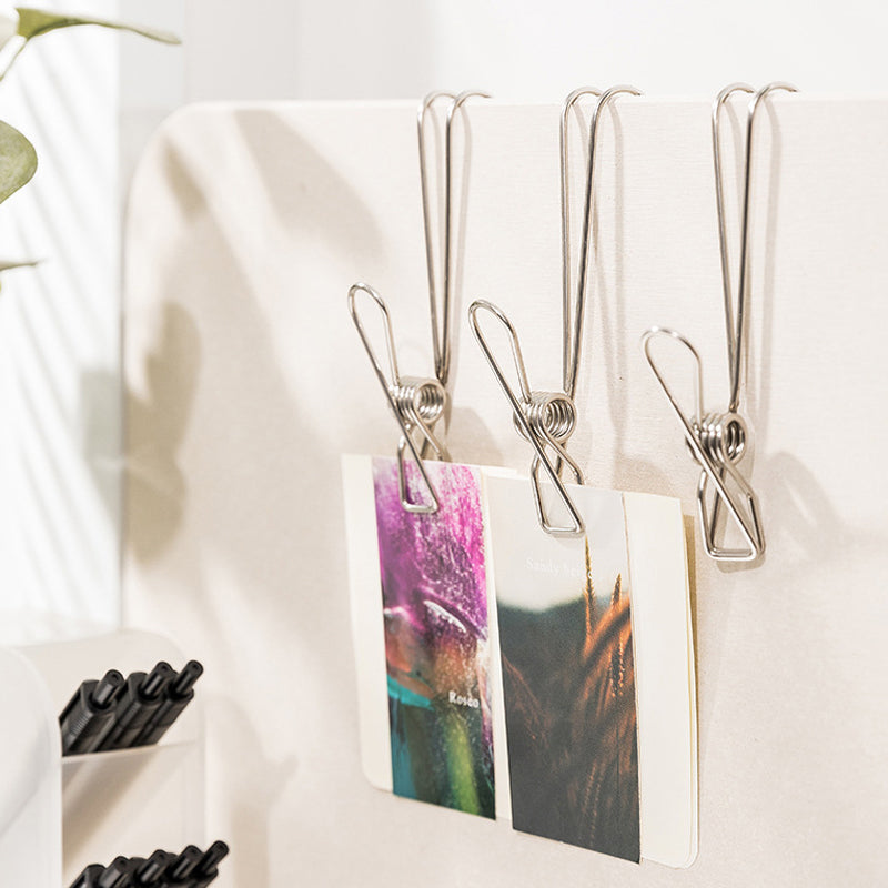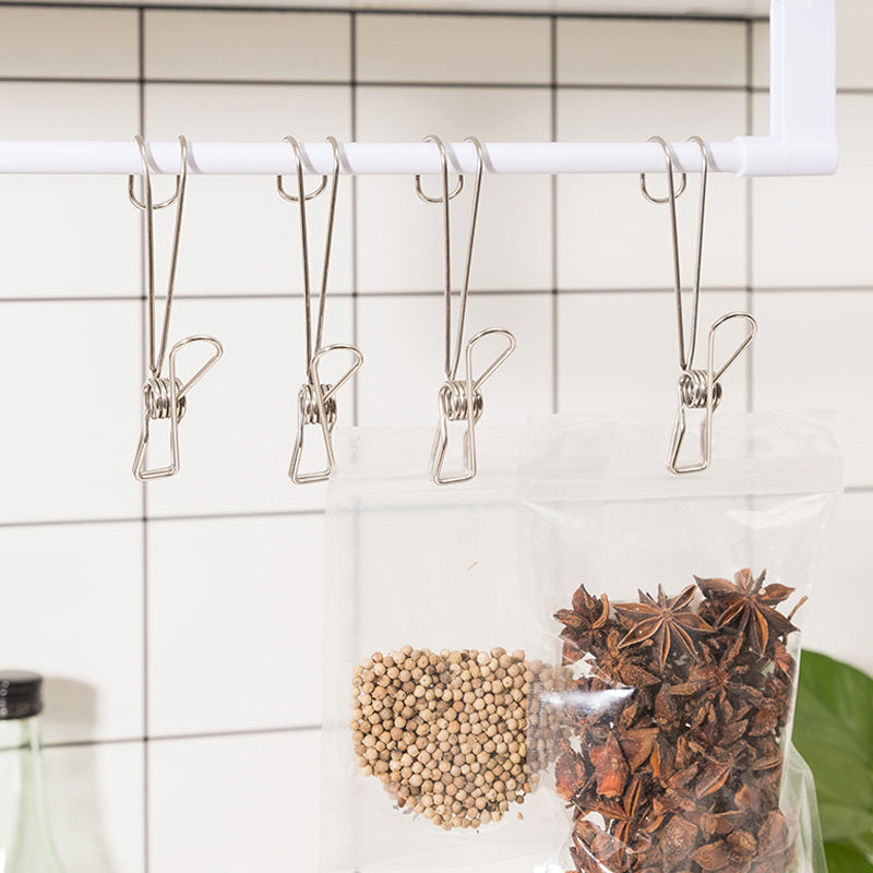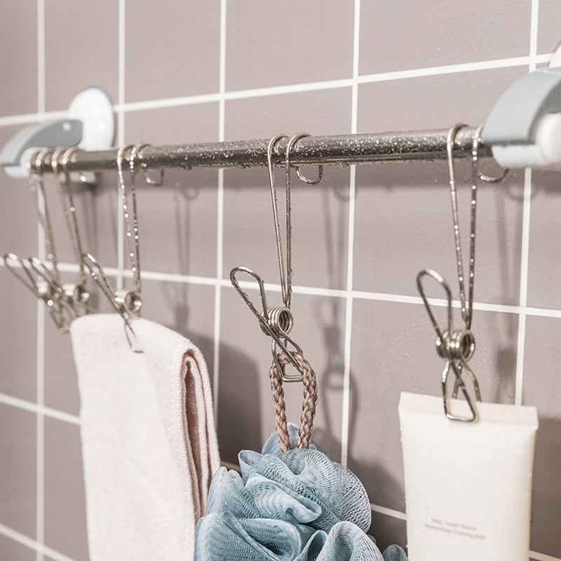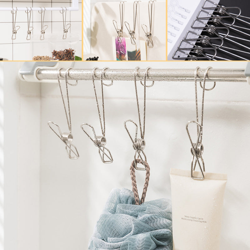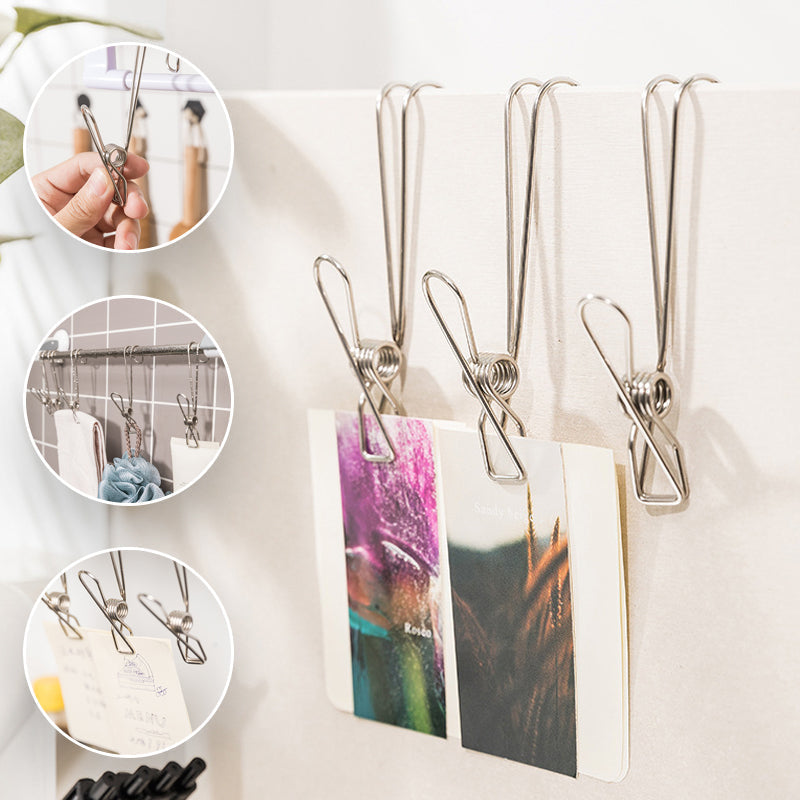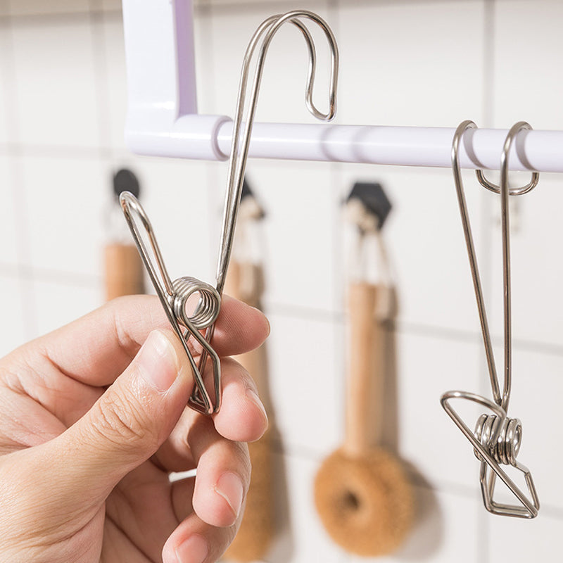 Application Scenario: This is a Universal Clip,It is Suitable for Hanging up Rubber Gloves and Sponges Tn The Kitchen and Bath Ball And Bath Towel In The Bathroom.Stainless Steel Long Tail Clip Has a Hook That Can Hang on Cross-Bar.You Can Hang Up Some Sundries That You Don't Want To Store On The Desk.It Will Be Neat and Save Space