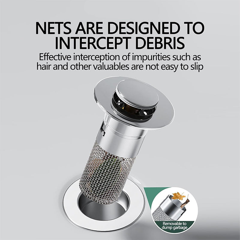 【Durable and Easy to Use】The pop-up sink drain filter is made with a brass core structure for durability and a long service life. It is easy to install by simply replacing the old sink plug with the new one. Cleaning is also a breeze, as you can simply remove the filter basket and rinse it under running water.