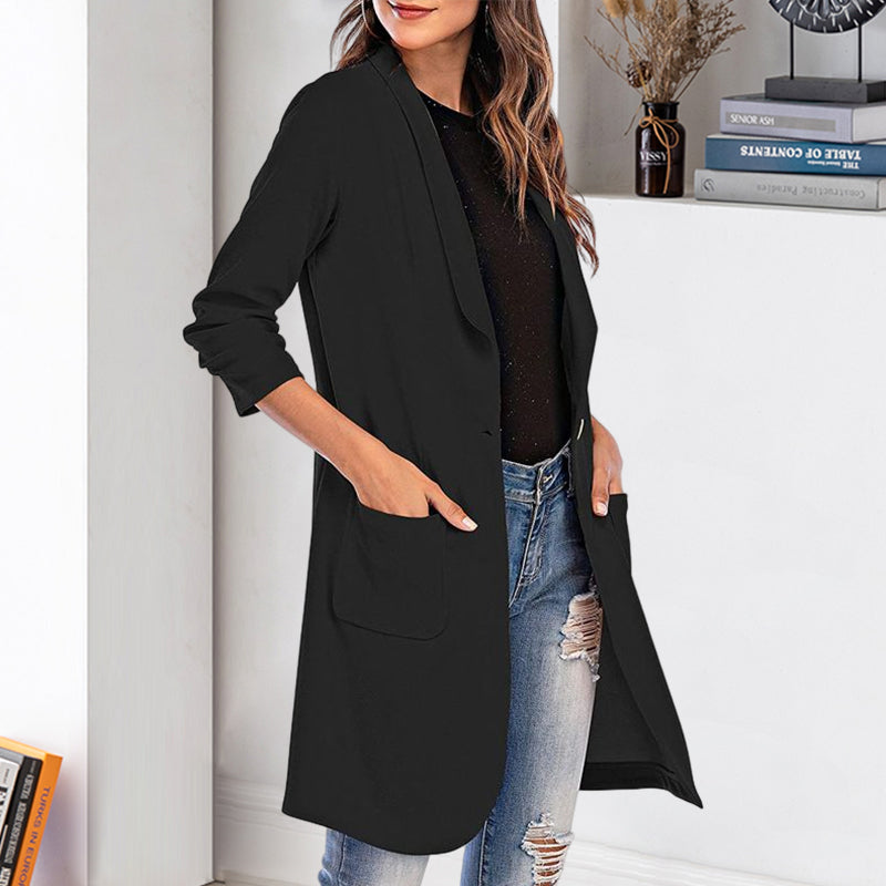 Women's Casual Slim Fit 3/4 Sleeve Long Blazer