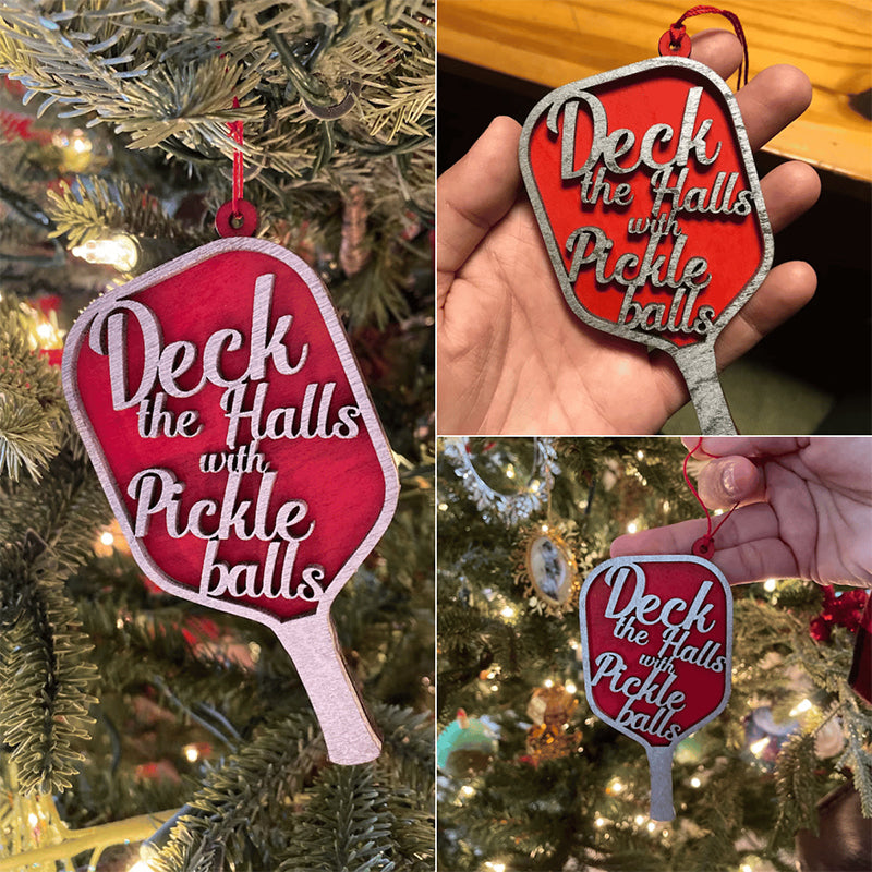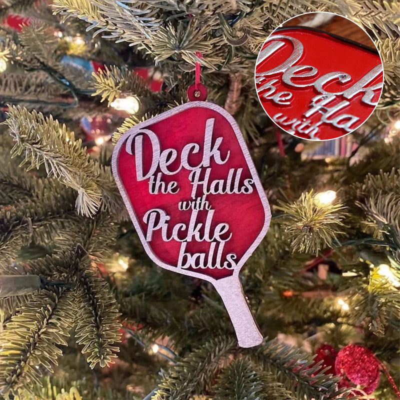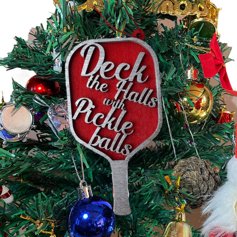 This adorable pickleball Christmas ornament features an adorable “deck the halls with pickleballs” design that will add a sporty touch to your holiday decorations.